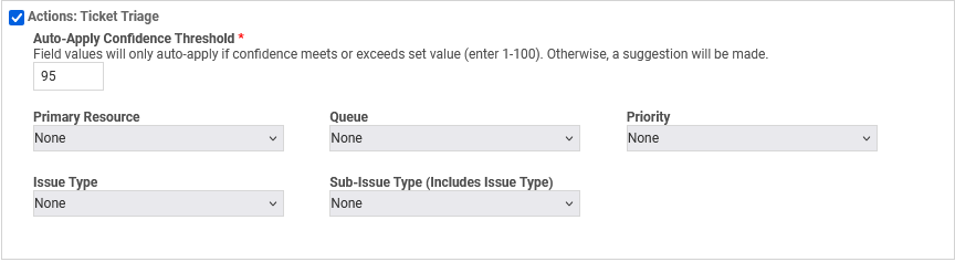 Specify the minimum AI confidence level required before Ticket Triage can automatically update a field.