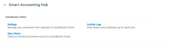 The Smart Accounting Hub for QuickBooks Online is a new API connector that is built, maintained, and supported directly by Kaseya. This new hub offers improved syncing performance, a modernized UI, better support response, and ongoing feature development based on your feedback.