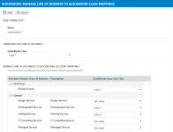 Mapping lines of business to QuickBooks classes