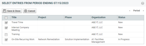 6. The selected items will be displayed on your current timesheet. You can now edit the time in the table.