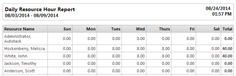 Description Daily resource hours for the time sheet period that contains the selected date. Helps you check if everyone is filling in their timesheet.