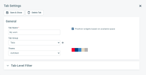 - Edit tab settings as needed. Refer to Edit tab settings to add a tab-level filter.