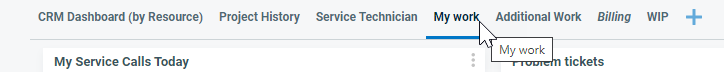 Start with a copy of a system tab | Opens a duplicate of one of the Autotask system tabs. If you already have the tab selected, (Copy) will be appended to the tab name. NOTE The widgets on any system tab will display only the data available to your security level. |