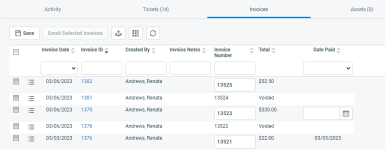 The Invoices tab appears on the accessory tabs of the Organization page. It contains the invoice history for the selected organization. To open the page, use the path(s) in the Security and navigation section above.