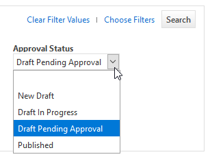 This makes it easy for users to find their own drafts, and for approvers to find items that require approval. To locate an item, select one of the following approval statuses: