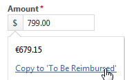 - Use Autotask to calculate the "To Be Reimbursed" amount by clicking on the currency indicator of the Amount field and copying the amount into the To Be Reimbursed field