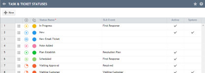 NAVIGATION Left Navigation Menu > Admin > Admin Categories > Features & Settings > Service Desk (Tickets) > Task & Ticket Statuses