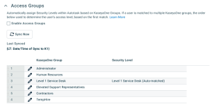 This section will allow you to automatically assign a KaseyaOne Group to a Security Level within Autotask.