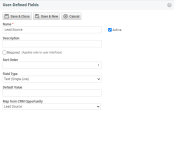 - When all information for the new user-defined field is complete, click Save & Close to add the new UDF to the form of the associated entity.