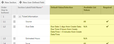 No default (user entry required) | Select if you do not want the field to have a default Due Date. Users must provide the date when creating the ticket. |