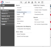 - In Autotask, hover over the Autotask logo, select CRM from the drop-down menu, then choose Configuration Items from the flyout menu.